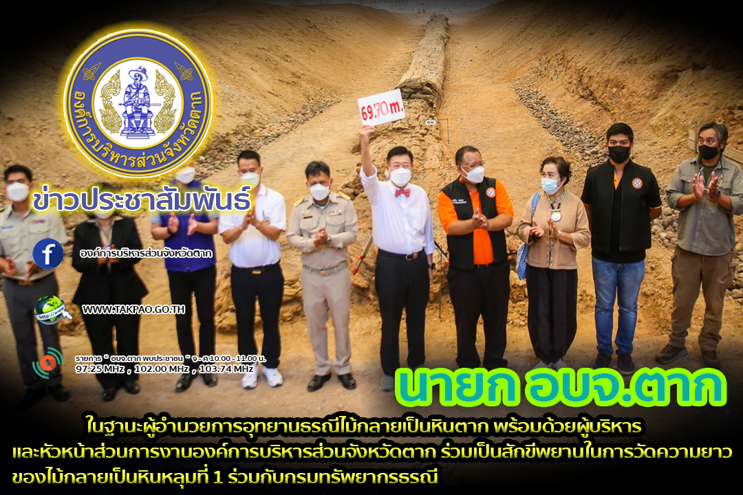 นายกองค์การบริหารส่วนจังหวัดตาก ในฐานะผู้อำนวยการอุทยานธรณีไม้กลายเป็นหินตาก พร้อมด้วยผู้บริหาร และหัวหน้าส่วนการงานองค์การบริหารส่วนจังหวัดตาก ร่วมเป็นสักขีพยานในการวัดความยาวของไม้กลายเป็นหินหลุมที่ 1