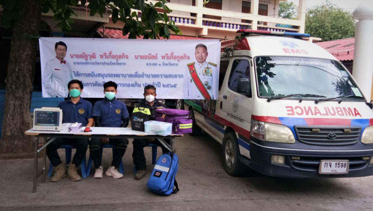 วันที่ 4 เมษายน พ.ศ. 2565 นายณัฐวุฒิ ทวีเกื้อกูลกิจ นายกองค์การบริหารส่วนจังหวัดตาก ได้ให้การสนับสนุนรถพยาบาลฉุกเฉิน จำนวน 1 คัน พร้อมมอบหมายเจ้าหน้าที่ศูนย์ป้องกันและบรรเทาสาธารณภัยองค์การบริหารส่วนจังหวัดตาก ลงพื้นที่อำนวยความสะดวกและเตรียมความพร้อมสำหรับให้บริการช่วยเหลือประชาชน ในการคัดเลือกทหารกองเกิน ประจำปี 2565 ระหว่างวันที่ 4 – 5 เมษายน 2565 ณ วัดโคกพลู อำเภอเมืองตาก จังหวัดตาก และได้รับเกียรติจากนายธนัสถ์ ทวีเกื้อกูลกิจ สมาชิกสภาผู้แทนราษฎรจังหวัดตาก เขต 1 ร่วมสนับสนุนในการดูแล และช่วยเหลือพี่น้องประชาชนในครั้งนี้ด้วย