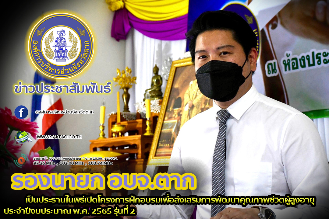 รองนายกองค์การบริหารส่วนจังหวัดตาก เป็นประธานในพิธีเปิดโครงการฝึกอบรมเพื่อส่งเสริมการพัฒนาคุณภาพชีวิตผู้สูงอายุ ประจำปีงบประมาณ พ.ศ. 2565 รุ่นที่ 1