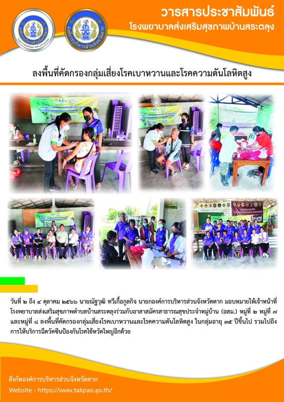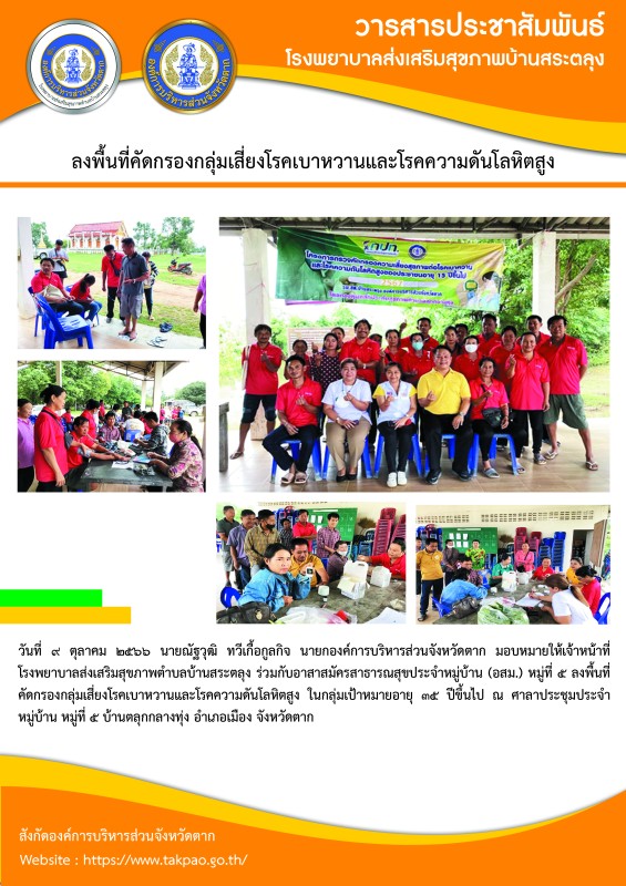 ลงพื้นที่คัดกรองกลุ่มเสี่ยงโรคเบาหวานและโรคความดันโลหิตสูง (วันที่ 2 - 4 ต.ค. 2567)