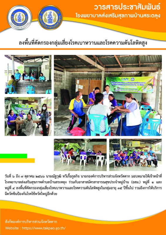 ลงพื้นที่คัดกรองกลุ่มเสี่ยงโรคเบาหวานและโรคความดันโลหิตสูง (วันที่ 6 - 7 ต.ค. 2567)