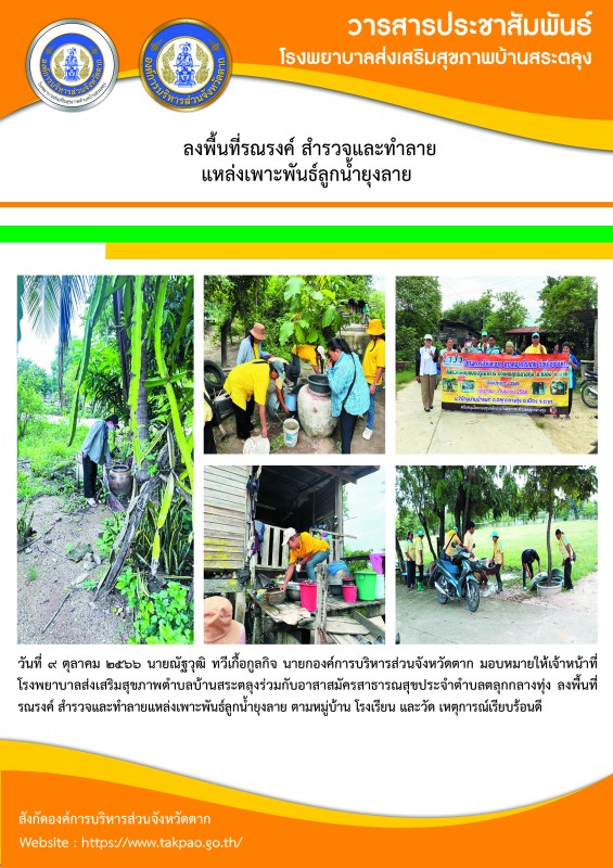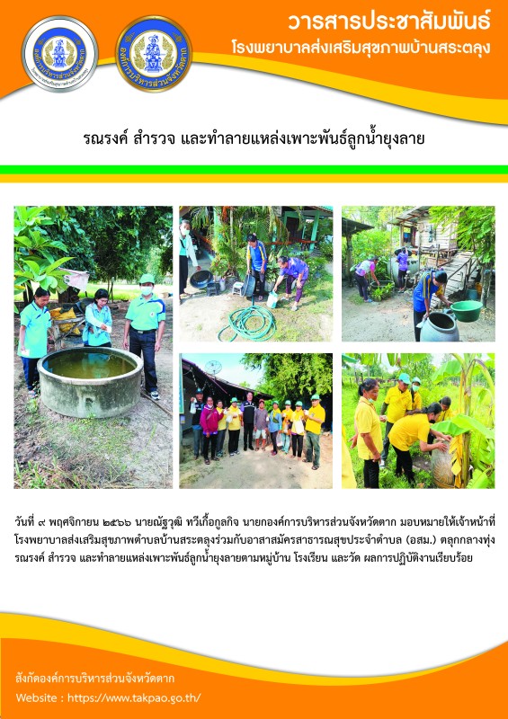 รณรงค์ สำรวจ และทำลายแหล่งเพาะพันธ์ลูกน้ำยุงลาย (วันที่ 9 พ.ย. 2567)