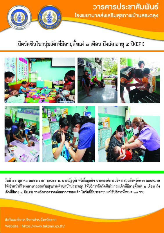 ฉีดวัคซีนในกลุ่มเด็กที่มีอายุ 2 เดือน - 4 ปี (EPI) (วันที่ 10 ต.ค. 2567)