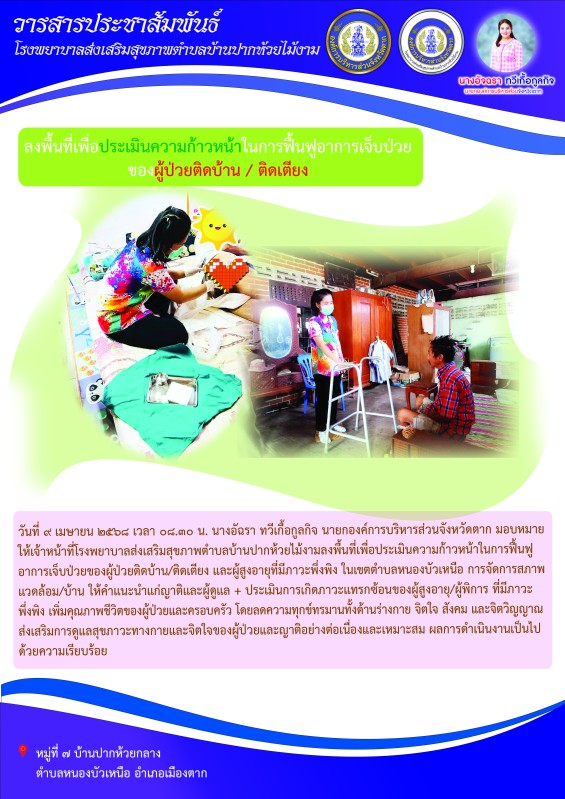 เจ้าหน้าที่ออกเยี่ยมบ้านผู้ป่วยติดเตียง พร้อมมอบสิ่งของเครื่องใช้ที่ได้รับบริจาคแก่ผู้ยากไร้ ตำบลหนองบัวเหนือ อำเภอเมือง จังหวัดตาก