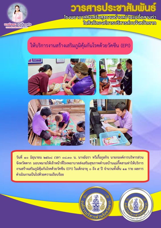 ให้บริการงานสร้างเสริมภูมิคุ้มกันโรคด้วยวัคซีน (EPI)