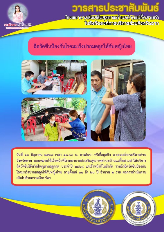 ฉีดวัคซีนป้องกันโรคมะเร็งปากมดลูก