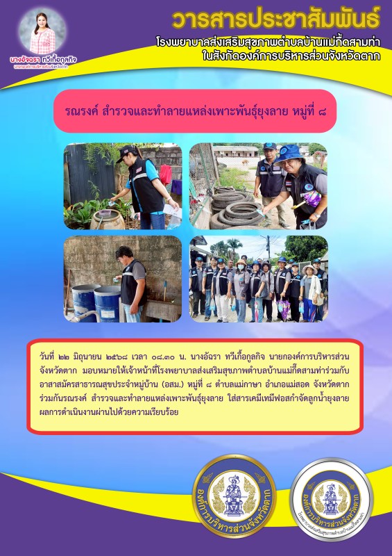 รณรงค์ สำรวจ และทำลายแหล่งเพาะพันธ์ลูกน้ำยุงลาย หมู่ที่ 8