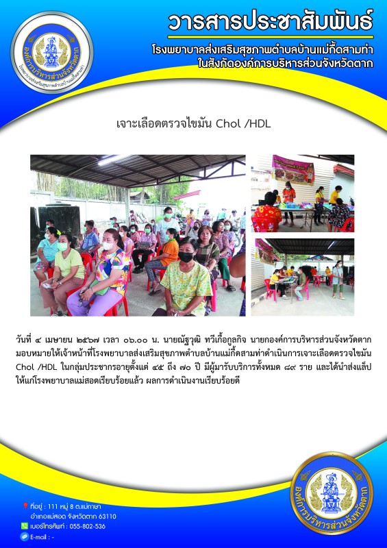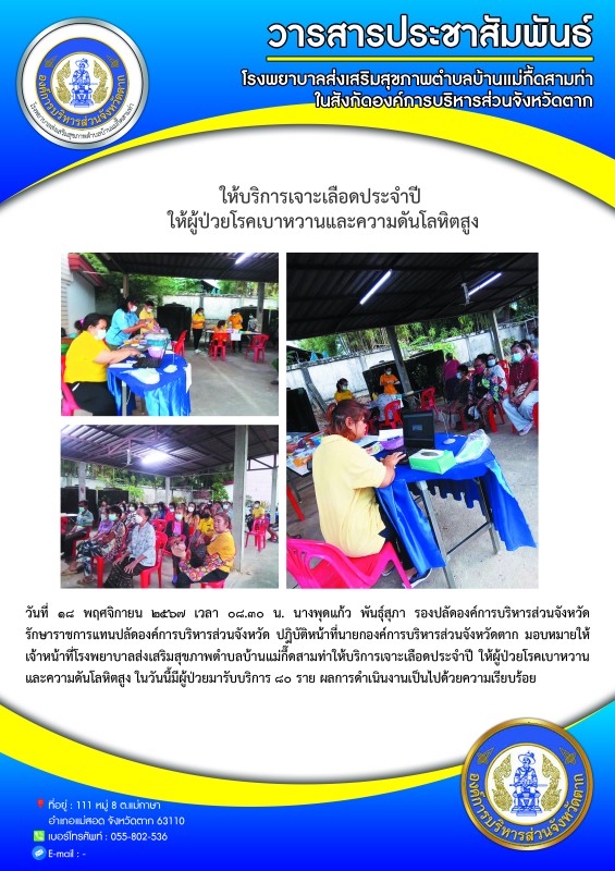 ให้บริการเจาะเลือดประจำปี กลุ่มผู้ป่วยโรคเบาหวานและโรคความดันโลหิตสูง