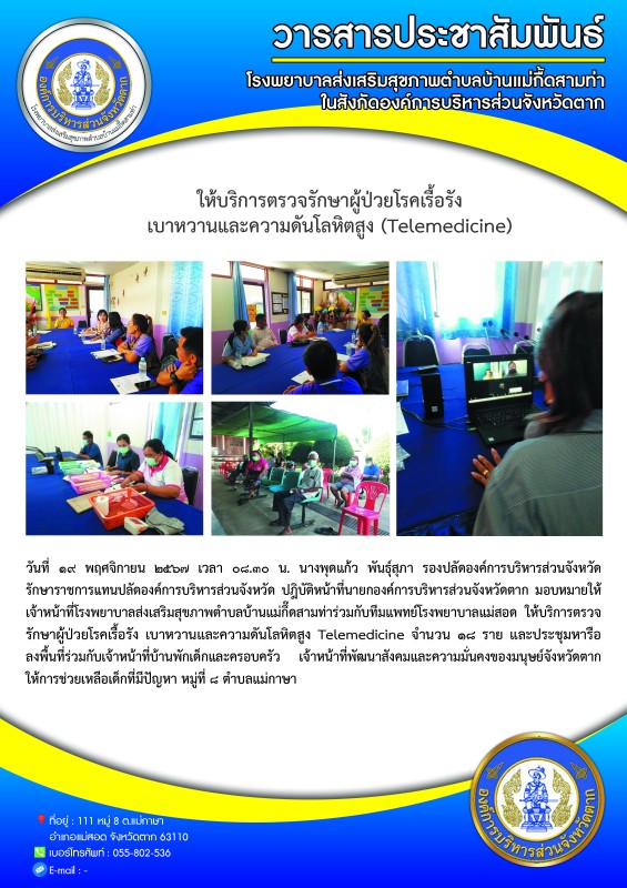 ให้บริการตรวจรักษาโรคเรื้อรัง (Telemedicine)