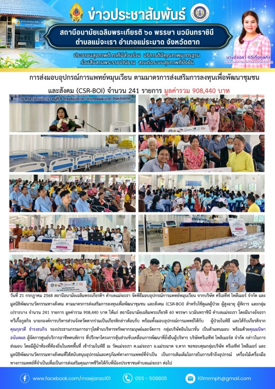 การส่งมอบอุปกรณ์การแพทย์หมุนเวียน ตามมาตรการส่งเสริมการลงทุนเพื่อพัฒนาชุมชนและสังคม