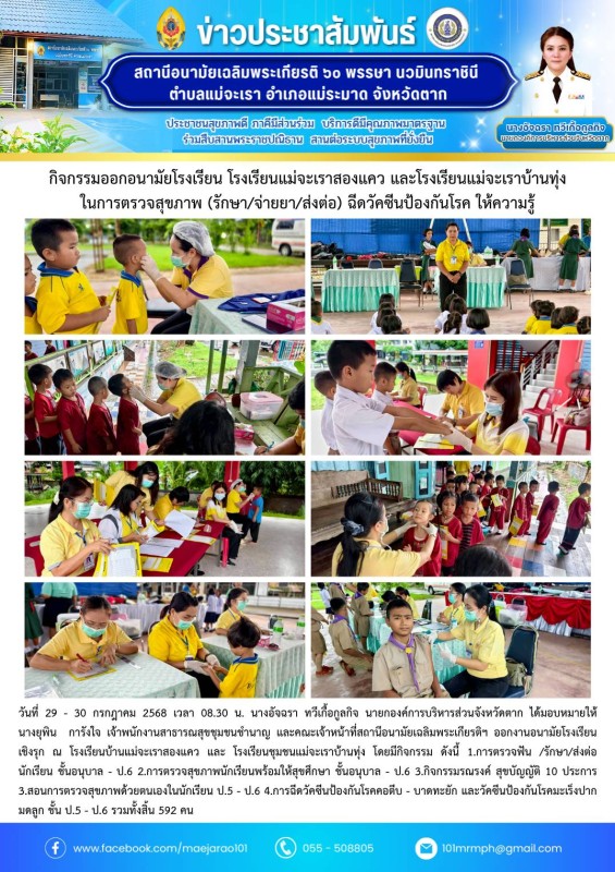 กิจกรรมออกอนามัยโรงเรียน โรงเรียนแม่จะเราสองแคว