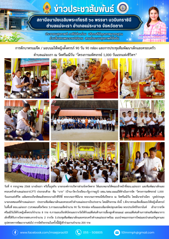 ร่วมตักบาตรนมจืด และมอบนมให้หญิงตั้งครรภ์ 90 วัน 90 กล่อง และประชุมทีมพัฒนาเด็กและครอบครัว
