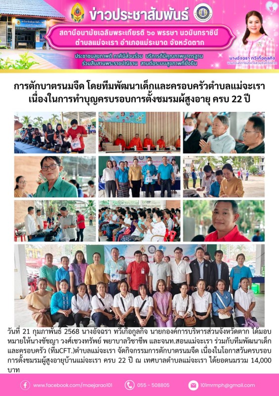 ทำบุญตักบาตรเนื่องวันครบรอบการจัดตั้งชมรมผู้สูงอายุ