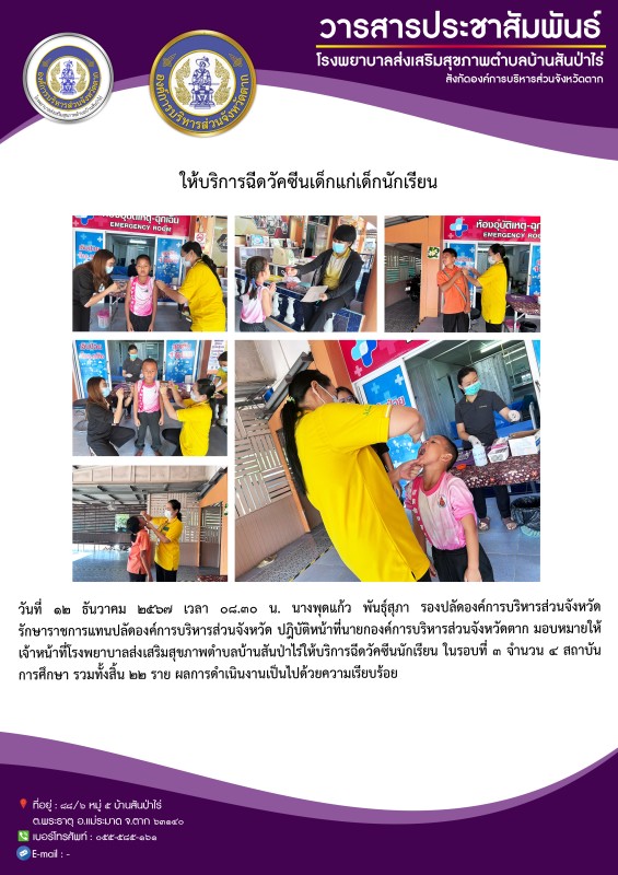 12 ธ.ค.67 รพ.สต.บ้านสันป่าไร่ ฉีดวัคซีนนักเรียน รอบที่ 3