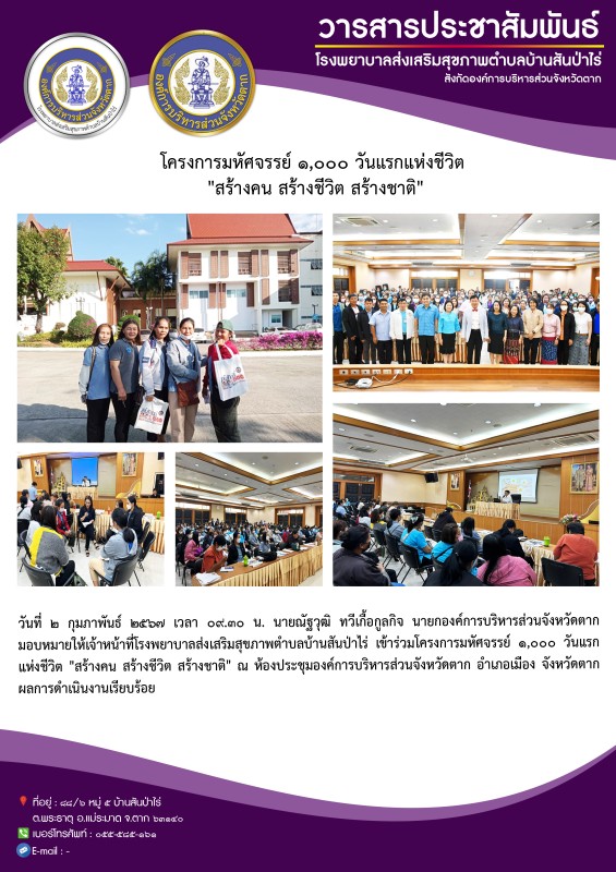 2 ก.พ. 67 จนท.รพ.สต.บ้านสันป่าไร่ และ อสม.เข้าร่วมอบรม“มหัศจรรย์ 1,000 วันแรกแห่งชีวิต สร้างคน สร้างชีวิต สร้างชาติ” ที่ อบจ.ตาก