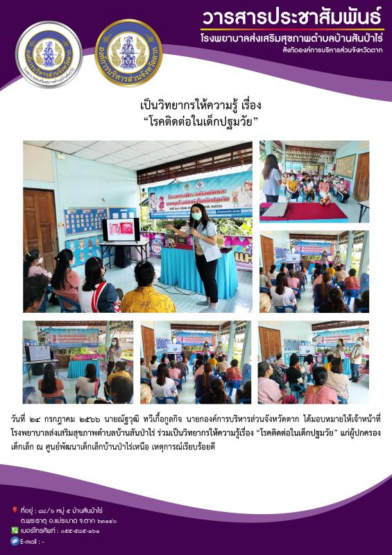 24 ก.ค. 66 จนท.รพ.สต.บ้านสันป่าไร่ ร่วมเป็นวิทยากรให้ความรู้แก่ผู้ปกครองเด็กศูนย์พัฒนาเด็กเล็กบ้านป่าไร่เหนือ
