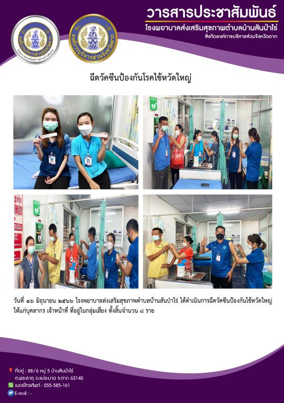 16 มิ.ย. 66 รพ.สต.บ้านสันป่าไร่ ฉีดวัคซีนป้องกันไข้หวัดใหญ่ แก่บุคลากรกลุ่มเสี่ยง จำนวน 8 ราย