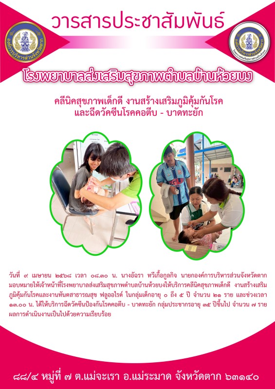 ให้บริการงานสร้างเสริมภูมิคุ้มกันโรค