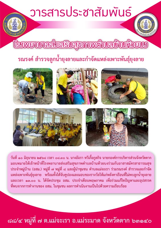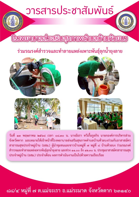 ร่วมรณรงค์สำรวจและทำลายแหล่งเพาะพันธุ์ลุกน้ำยุงลาย