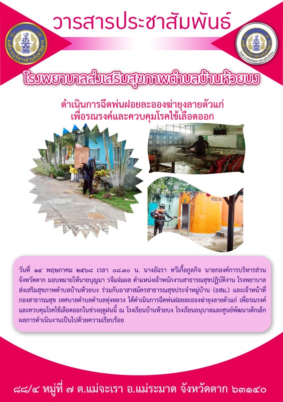 ฉีดพ่นฝอยละอองฆ่ายุงลาย ควบคุมโรคไข้เลือดออก