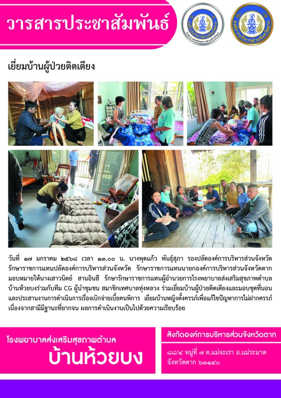 เยี่ยมบ้านผู้ป่วยติดเตียงและมอบชุดที่นอน
