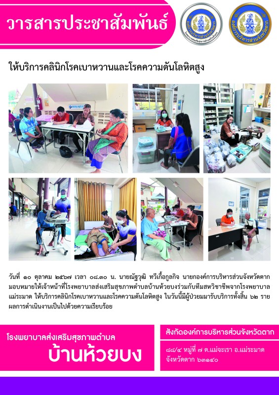 ให้บริการคลินิคโรคเบาหวานและโรคความดันโลหิตสูง (10 ตุลาคม 2567)