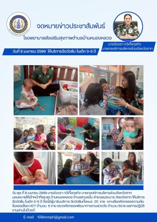 วัน พุธ ที่ 8 เมษายน 2569 นางอัจฉรา ทวีเกื้อกุลกิจ นายกองค์การบริหารส่วนจังหวัดตาก มอบหมายให้เจ้าหน้าที่รพ.สต.บ้านหนองหลวง ตำบลสามหมื่น อำเภอแม่ระมาด จังหวัดตาก ให้บริการฉีดวัดซีน ในเด็ก 0-5 ปี ทั้งนี้มีผู้มารับบริการ ฉีดวัดซีนทั้งหมด 20 ราย เจาะเลือดคัดกรองความเข้มข้นของเลือด HCT จำนวน 5ราย คัดกรองพัฒนาการเด็ก 0-5 ปี จำนวน 5 ราย ผลการดำเนินงานผ่านไปด้วยดี