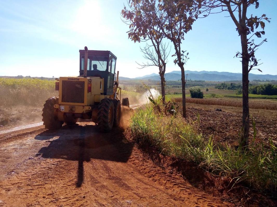 ให้การสนับสนุนเครื่องจักรกล ลงพื้นที่ดำเนินการปรับปรุงถนนลูกรังบดอัดแน่น