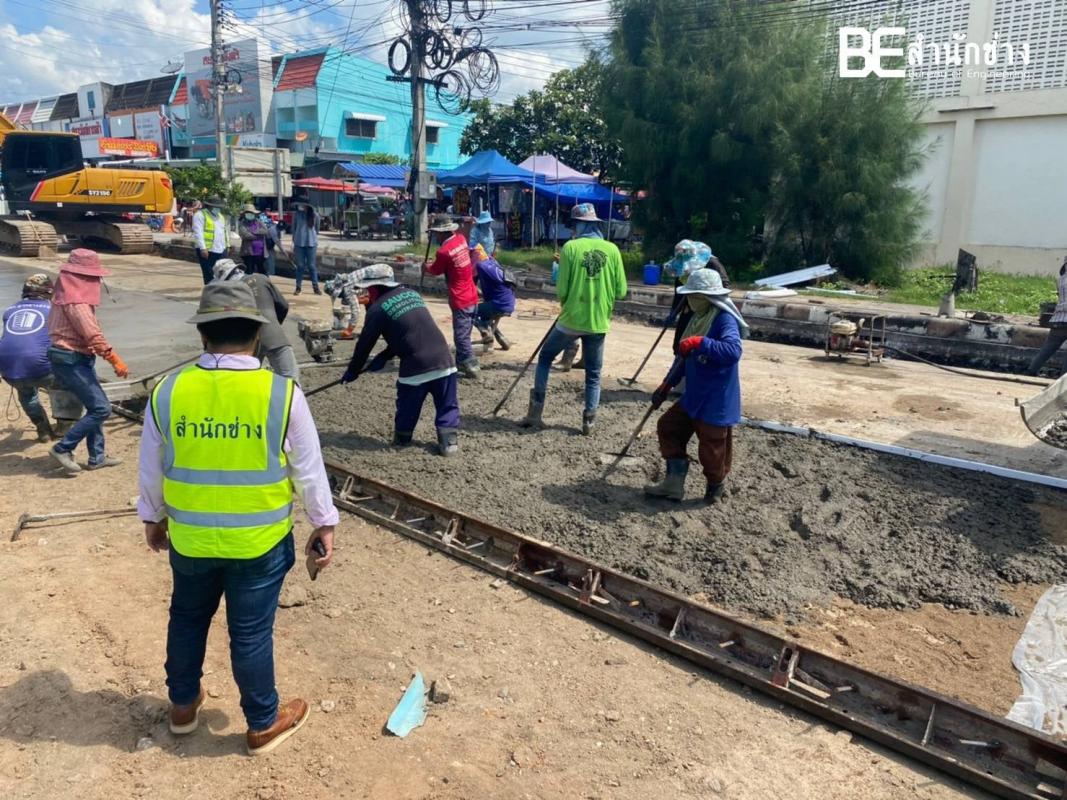รายงานความก้าวหน้าโครงการฯ ลงทรายปรับระดับ ตั้งแบบข้างแล้วเทคอนกรีต