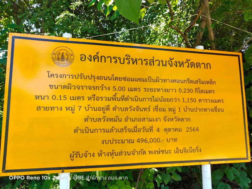 องค์การบริหารส่วนจังหวัดตาก ได้ดำเนินการจ้างเหมาก่อสร้างถนนคอนกรีตเสริมเหล็ก ในโครงการปรับปรุงถนนซ่อมแซมเป็นผิวทางคอนกรีตเสริมเหล็ก