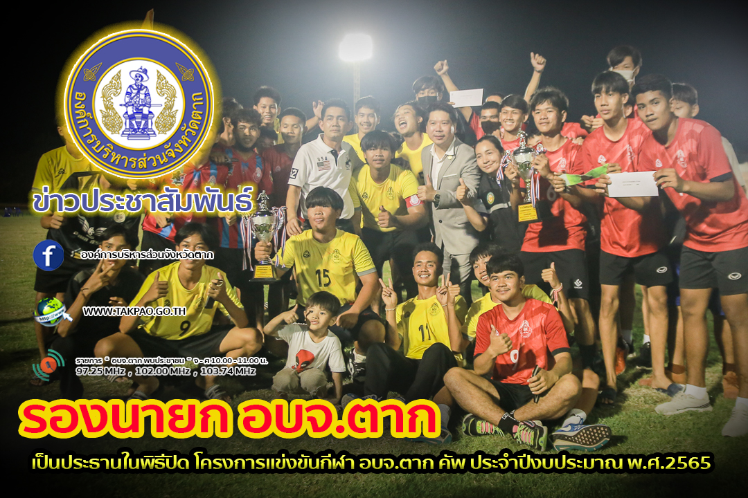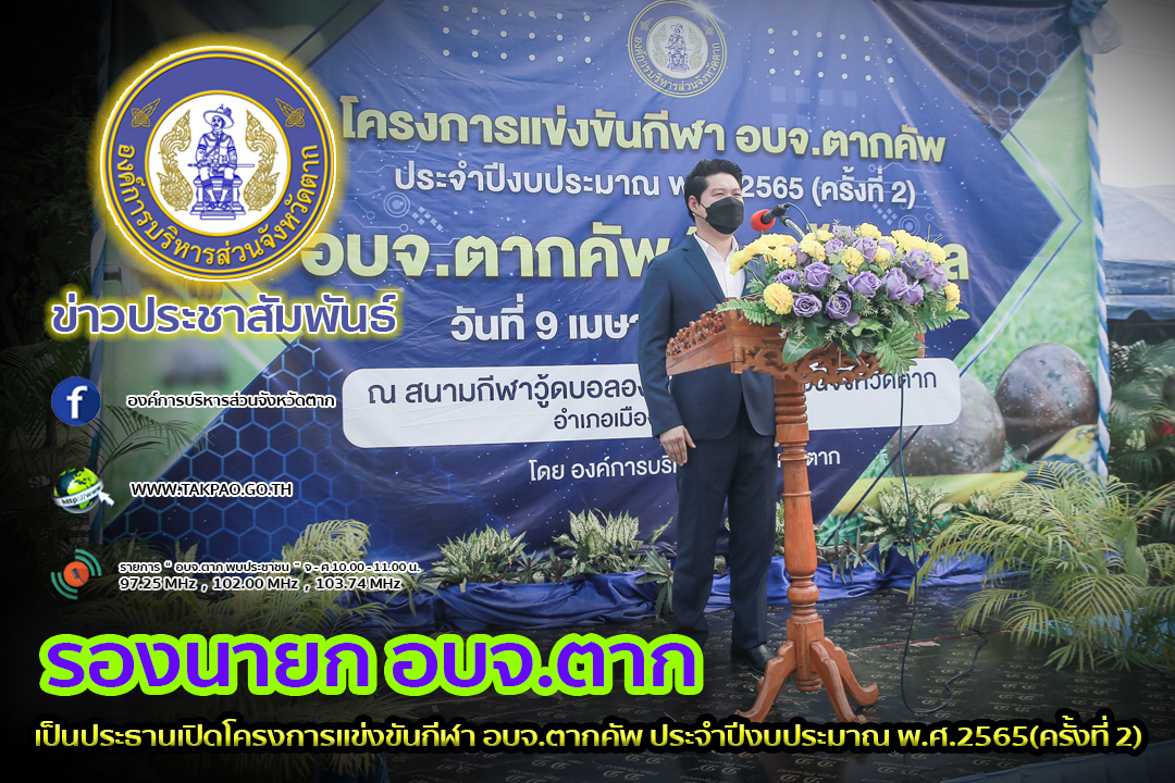 รองนายกองค์การบริหารส่วนจังหวัดตาก เป็นประธานเปิดโครงการแข่งขันกีฬา อบจ.ตากคัพ ประจำปีงบประมาณ พ.ศ.2565(ครั้งที่ 2)