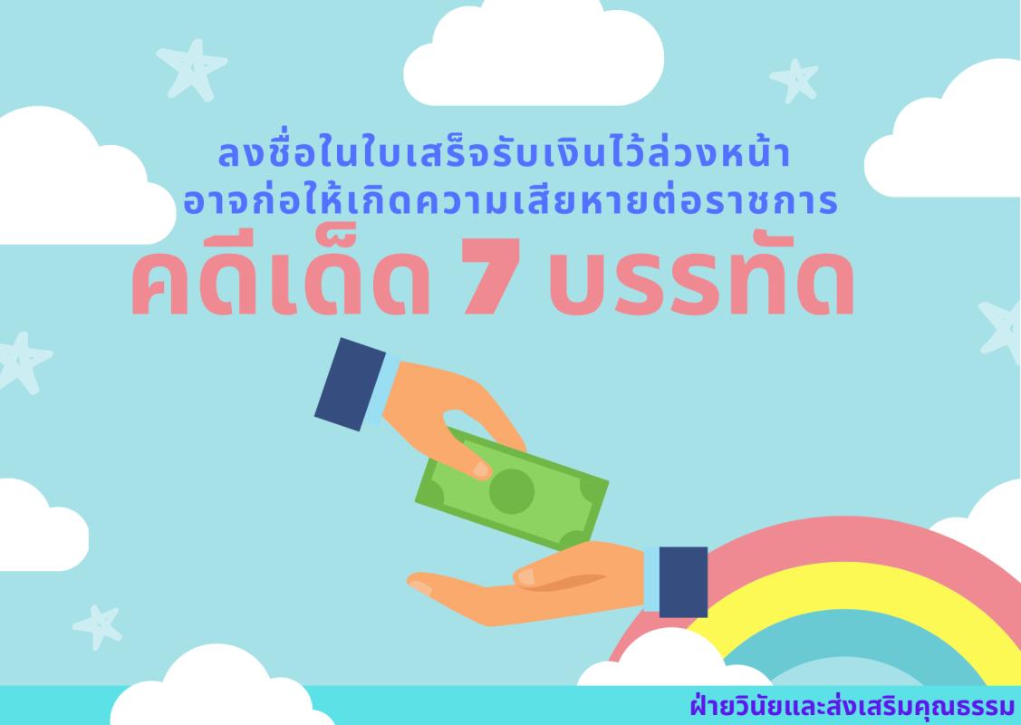 การลงชื่อในใบเสร็จรับเงินไว้ล่วงหน้า อาจก่อให้เกิดความเสียหายต่อราชการ