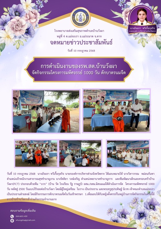 จัดกิจกรรมโครงการมหัสจรย์ 1,000 วันแรกแห่งชีวิต ร่วมตักบาตรนมจืด
