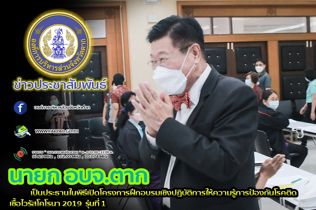 นายกองค์การบริหารส่วนจังหวัดตาก เป็นประธานในพิธีเปิดโครงการฝึกอบรมเชิงปฏิบัติการให้ความรู้การป้องกันโรคติดเชื้อไวรัสโคโรนา 2019 รุ่นที่ 1