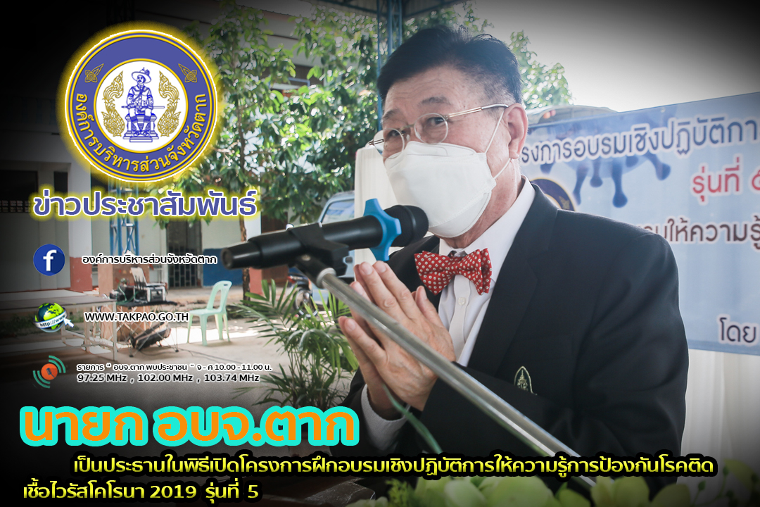 นายก อบจ.ตาก เป็นประธานในพิธีเปิดโครงการฝึกอบรมเชิงปฏิบัติการให้ความรู้การป้องกันโรคติดเชื้อไวรัสโคโรนา 2019 รุ่นที่ 5