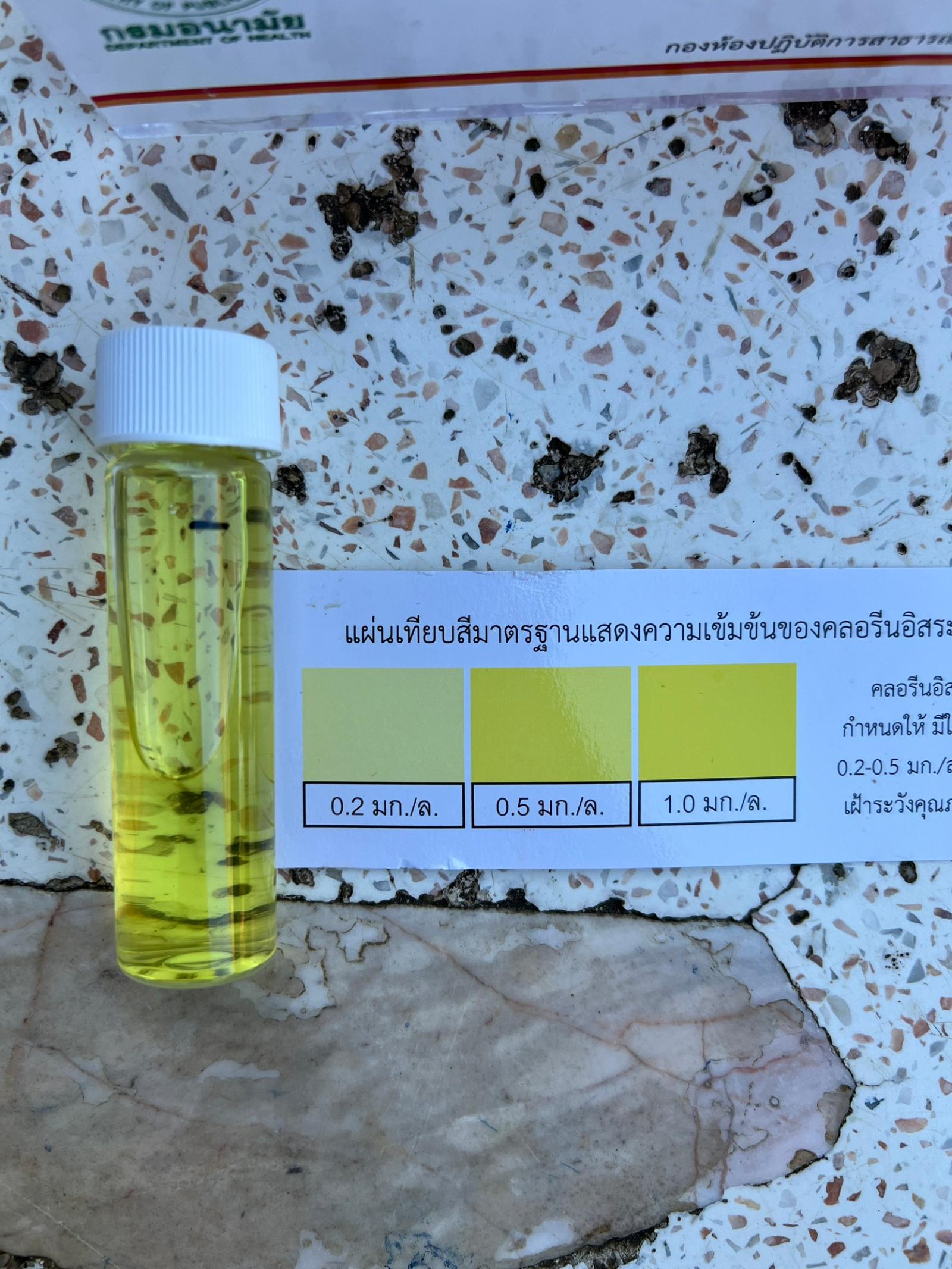 ใช้ชุดทดสอบโคลิฟอร์มในน้ำบริโภค จำนวน ๔ แห่ง และใช้ชุดทดสอบคลอรีนอิสระคงเหลือในน้ำ (อ.๓๑)