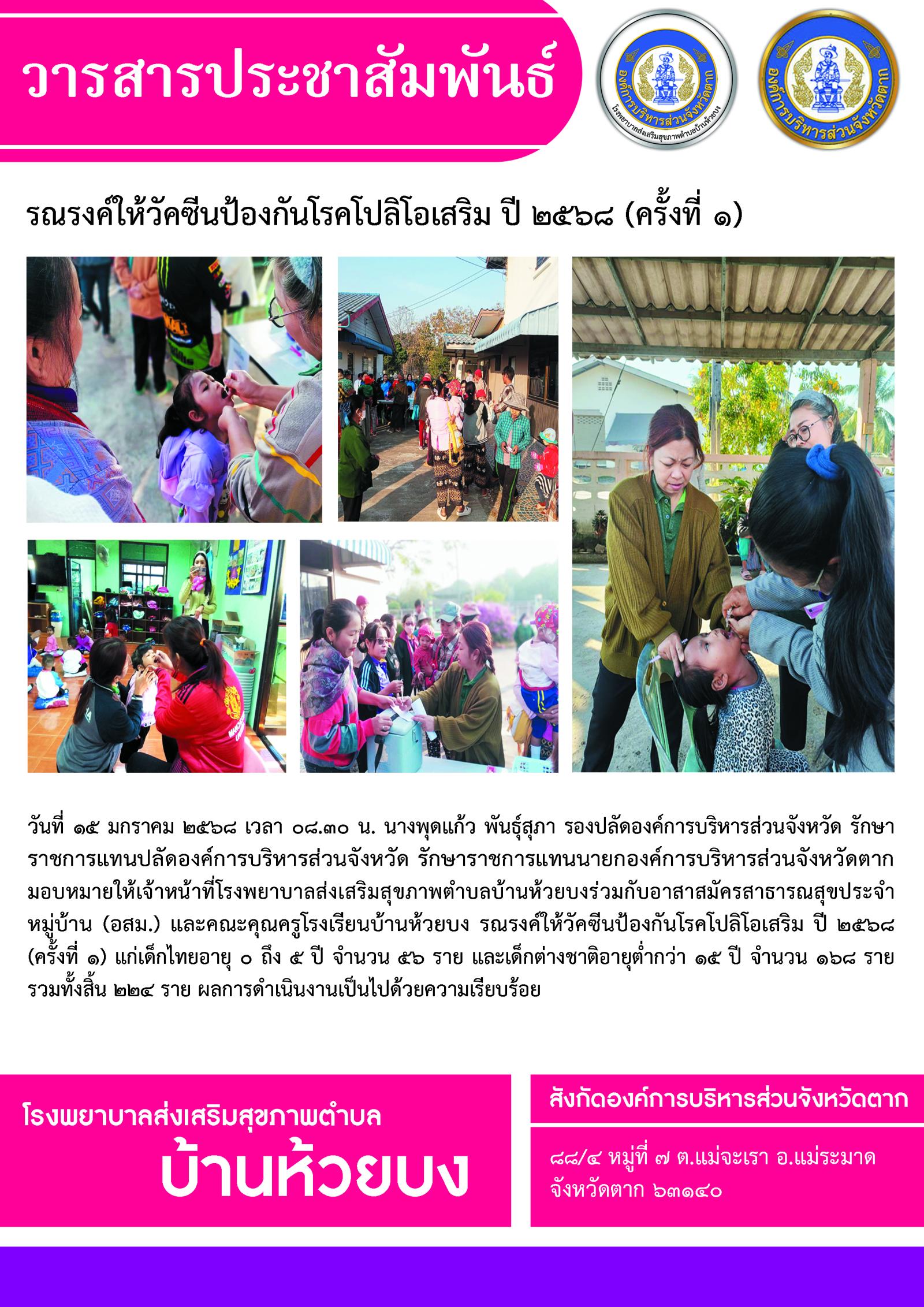 และคณะคุณครูโรงเรียนบ้านห้วยบง รณรงค์ให้วัคซีนป้องกันโรคโปลิโอเสริม ปี ๒๕๖๘ (ครั้งที่ ๑)