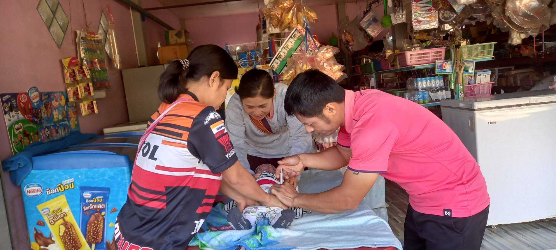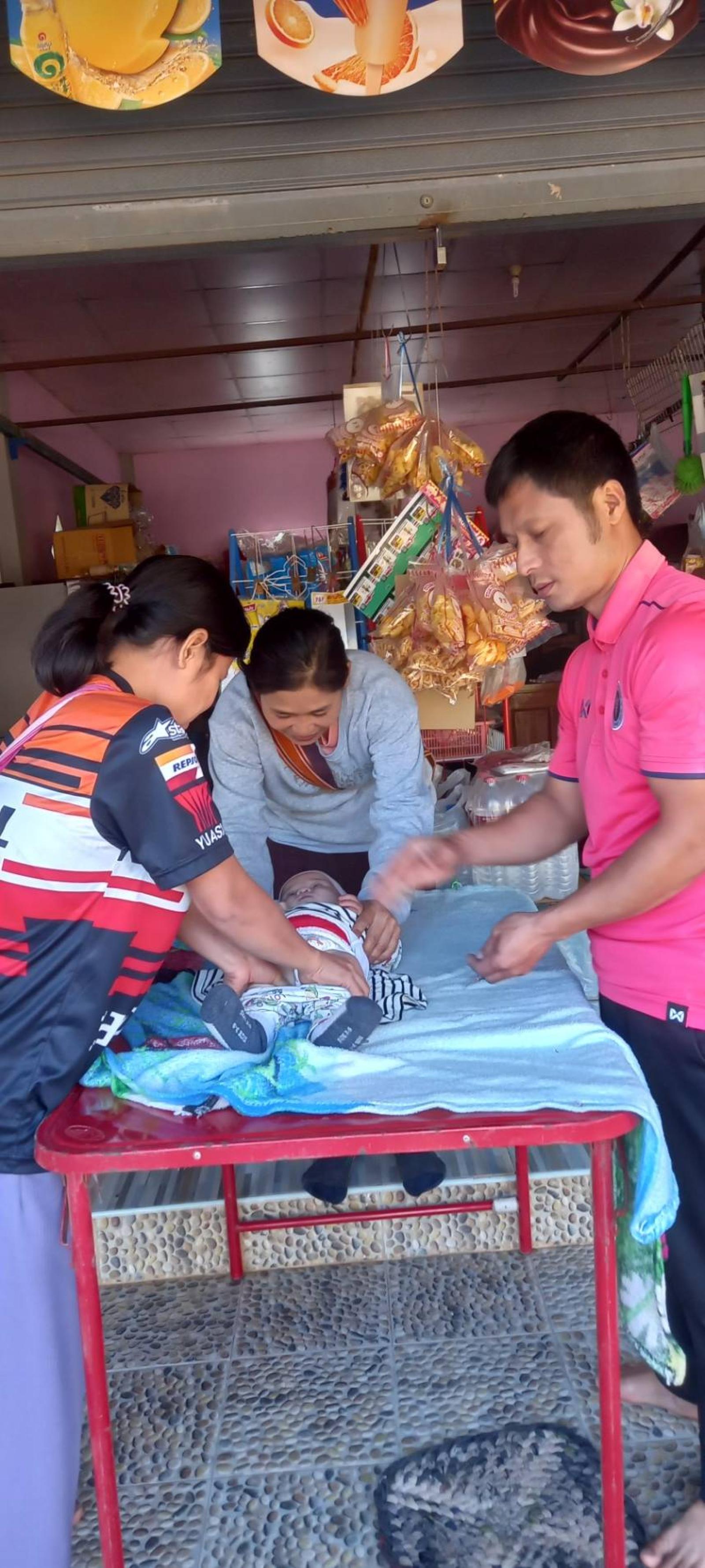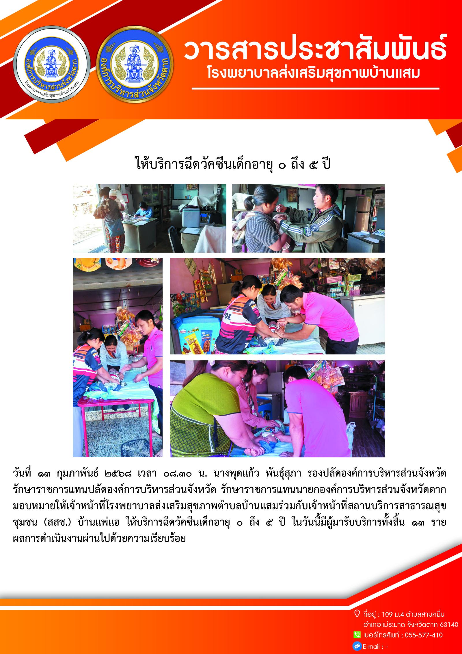 ให้บริการฉีดวัคซีนเด็กอายุ ๐ ถึง ๕ ปี ในวันนี้มีผู้มารับบริการทั้งสิ้น ๑๓ ราย ผลการดำเนินงานผ่านไปด้วยความเรียบร้อย