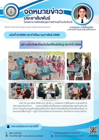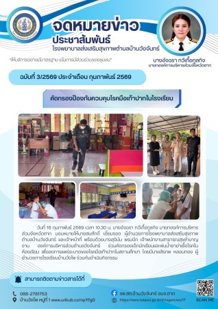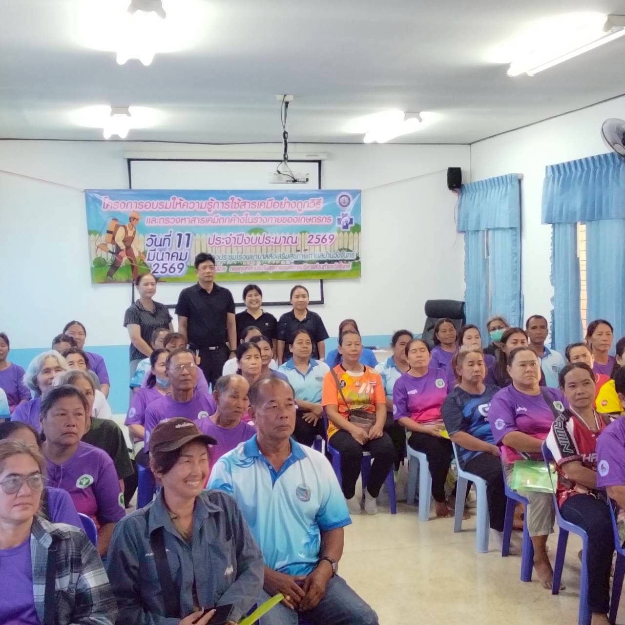 วันที่ 11 มีนาคม 2569 เวลา 08.30 น. นางอัจฉรา ทวีเกื้อกูลกิจ นายกองค์การบริหารส่วนจังหวัดตาก มอบหมายให้เจ้าหน้าที่โรงพยาบาลส่งเสริมสุขภาพตำบลบ้านวังจันทร์ ดำเนินกิจกรรมโครงการอบรมให้ความรู้การใช้สารเคมีอย่างถูกวิธีและตรวจหาสารเคมีตกค้างในร่างกายของเกษตรกร ปีงบประมาณ 2569 โดยมีนายสมศักดิ์ เอี่ยมรอด ผอ.รพ.สต.บ้านวังจันทร์ เป็นประธานเปิดโครงการฯ กลุ่มเป้าหมายเกษตรกรกลุ่มเสี่ยงที่ได้รับการประเมินความเสี่ยงในการทำงานของเกษตรกรจากการสัมผัสสารเคมีกำจัดศรัตรูพืช หมู่ที่ 1-หมู่ที่ 3 ตำบลวังจันทร์ อำเภอสามเงา จังหวัดตาก จำนวนทั้งหมด 50 ราย