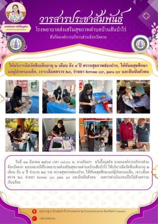 8 เมษายน 2569 นางอัจฉรา ทวีเกื้อกูลกิจ นายกองค์การบริหารส่วนจังหวัดตาก มอบหมายให้ รพ.สต.บ้านสันป่าไร่ ร่วมกับ อาสาสมัครสาธารณสุข หมู่ที่ 5 บ้านสันป่าไร่ รณรงค์สำรวจและทำลายแหล่งเพาะพันธ์ลูกน้ำยุงลาย 100 เมตร รอบบ้านงานศพ จำนวน 15 หลังคาเรือน ภาชนะทั้งหมด 126 ชิ้น พบลูกน้ำยุงลาย 5 หลังคาเรือน ภาชนะ 5 ชิ้น ค่าBI=33.3 ค่าCI=3.9 และค่าHI=33.3 ภาชนะที่พบลูกน้ำทำลายโดยการเทน้ำทิ้ง