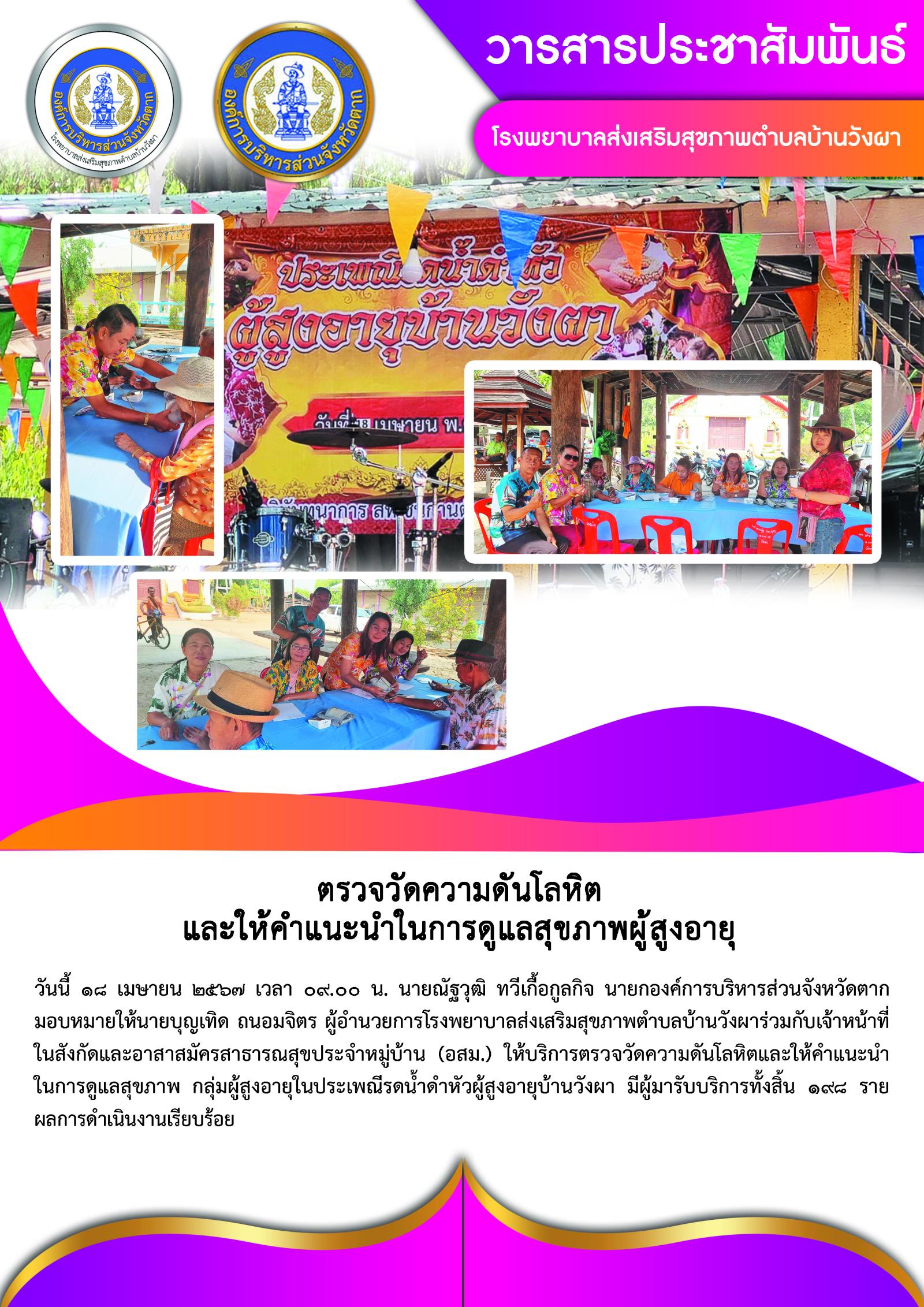 ตรวจวัดความดันโลหิตและให้คำแนะนำในการดูแลสุขภาพผู้สูงอายุ (18 เม.ย. 2567)