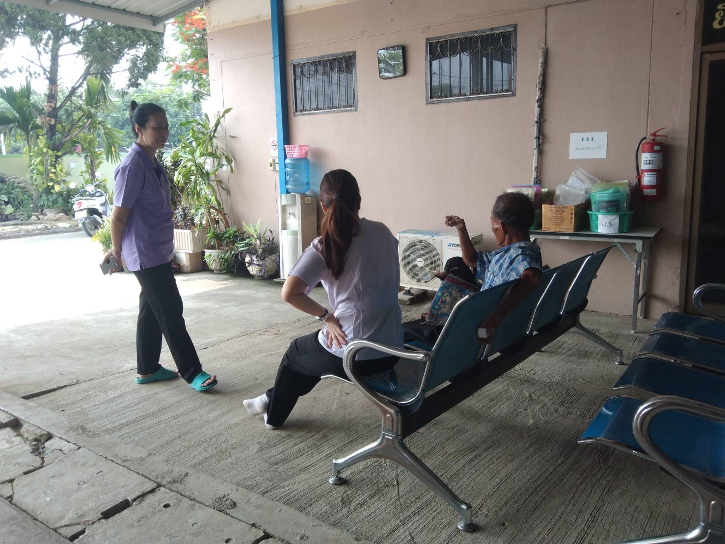 เจ้าหน้าที่โรงพยาบาลส่งเสริมสุขภาพตำบลบ้านห้วยบงร่วมกับเจ้าหน้าที่ทีมงานนักกายภาพจากโรงพยาบาลแม่ระมาด