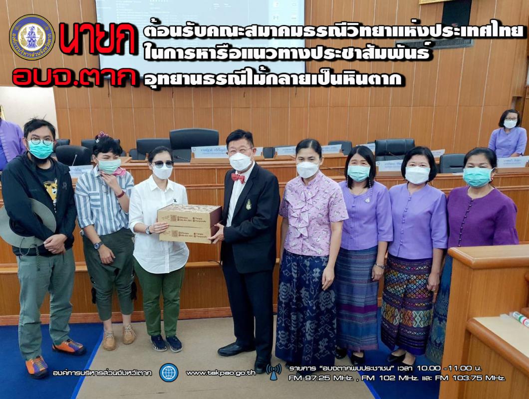 วันที่ 19 ตุลาคม 2564 นายณัฐวุฒิ ทวีเกื้อกูลกิจ นายกองค์การบริหารส่วนจังหวัดตาก ผู้อำนวยการอุทยานธรณีไม้กลายเป็นหินตาก และคณะผู้บริหาร ข้าราชการ องค์การบริหารส่วนจังหวัดตาก ให้การต้อนรับคุณจณิน วัฒนปฤดา ประชาสัมพันธ์สมาคมธรณีวิทยาแห่งประเทศไทย พร้อมด้วยคณะ ในการหารือแนวทางการจัดทำสื่อประชาสัมพันธ์ นำเสนอข้อมูลอุทยานธรณีไม้กลายเป็นหินตาก เพื่อผลักดันให้บันทึกลงสถิติโลก ว่าเป็นไม้กลายเป็นหินที่ยาวที่สุดในโลก (Guinness Book of World Records ) พัฒนาเป็นสถานที่ท่องเที่ยวและแหล่งเรียนรู้ในด้านธรณีวิทยาให้กับเยาวชนและประชาชนที่สนใจ ..............การเผยแพร่และประชาสัมพันธ์ให้ประชาชนได้รู้จักและรับทราบความเป็นมา เกิดความรัก ความหวงแหน และภาคภูมิใจในทรัพยากรที่เรามี จึงเป็นสิ่งสำคัญ ที่เราจะร่วมมือกัน ดำเนินการในเรื่องนี้ให้ประสบผลสำเร็จได้ รวมไปถึงการประชาสัมพันธ์สถานที่ท่องเที่ยวทางธรรมชาติอีกหลายแห่งในจังหวัดตาก และวิถีชีวิตชุมชน ผลิตภัณฑ์ชุมชน ซึ่งจะสามารถทำให้เกิดประโยชน์กับประชาชนในท้องถิ่นได้อีกด้วย