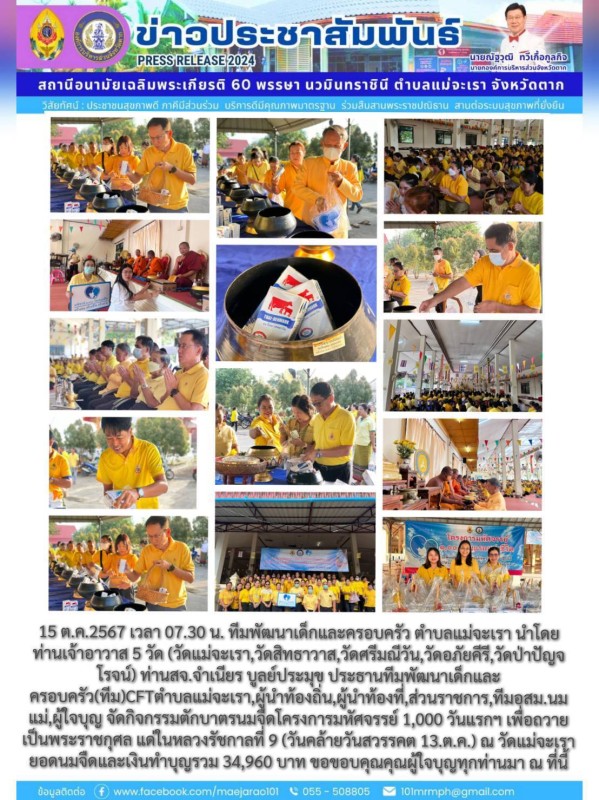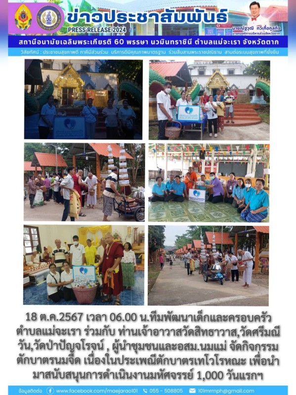 กิจกรรมตักบาตร นมจืด โครงการมหัสจรรย์ 1000 วันแรกแห่งชีวิตฯ (15 ตุลาคม 2567)