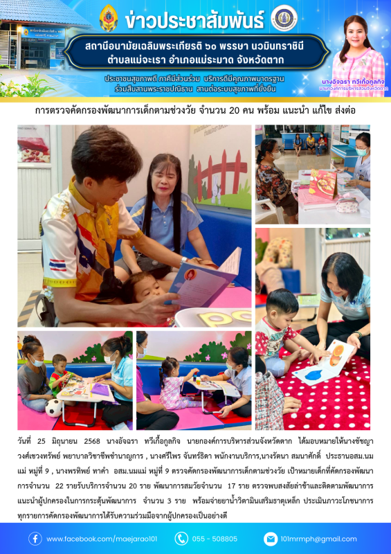 รณรงค์ตรวจคัดกรองพัฒนาการเด็กตามกลุ่มวัย พร้อมให้คำปรึกษาการดูแลเด็กครบวงจร