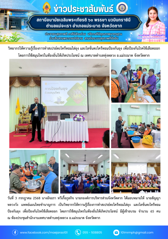 เข้าร่วมการทำสเปรย์ตะไคร้หอมไล่ยุง และโลชั่นตะไคร้หอมป้องกันยุง