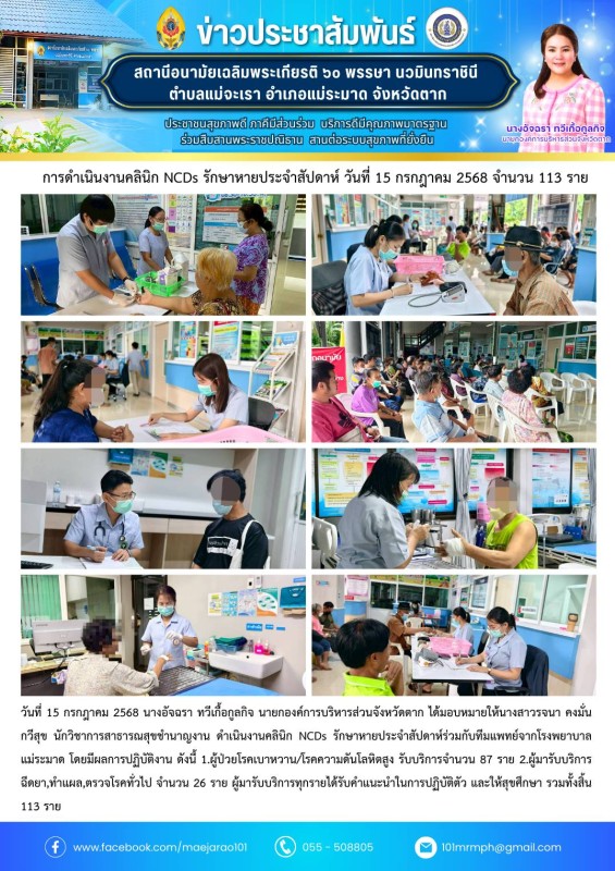 ให้บริการงานคลินิก NCDs รักษาหายประจำสัปดาห์