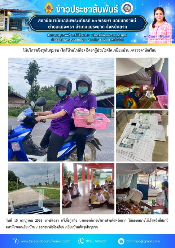 ให้บริการเชิงรุก (ใกล้บ้านใกล้ใจ) ฉีดยาผู้ป่วยโรคไต เยี่ยมบ้าน ตรวจดวงตานักเรียน