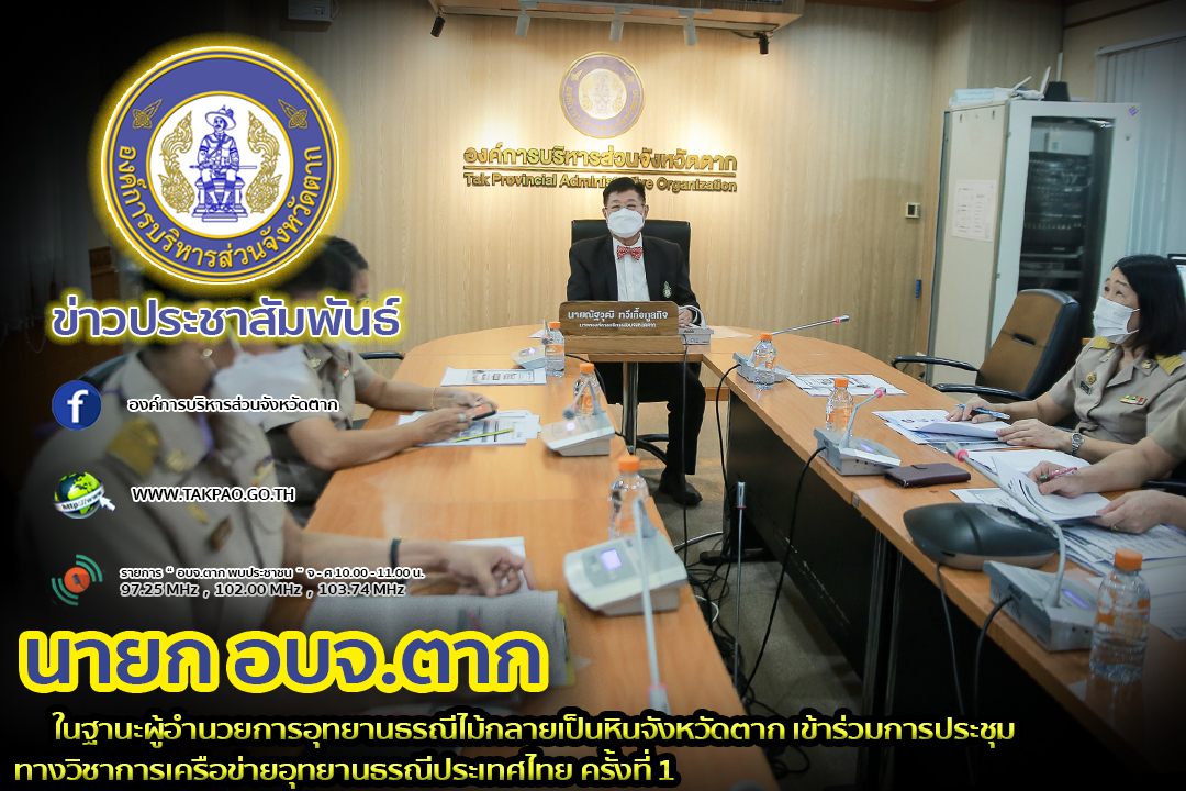 วันที่ 25 เมษายน พ.ศ. 2565 นายณัฐวุฒิ ทวีเกื้อกูลกิจ นายกองค์การบริหารส่วนจังหวัดตาก ในฐานะผู้อำนวยการอุทยานธรณีไม้กลายเป็นหินจังหวัดตาก เข้าร่วมการประชุมทางวิชาการเครือข่ายอุทยานธรณีประเทศไทย ครั้งที่ 1 (The 1st Thailand Geoparks Network Symposium : Webinar) ณ ห้องประชุมวอร์รูม ชั้น 2 องค์การบริหารส่วนจังหวัดตาก ผ่านทางระบบสื่ออิเล็กทรอนิกส์ (Zoom Meeting) โดยมีนายวราวุธ ศิลปอาชา รัฐมนตรีว่าการกระทรวงทรัพยากรธรรมชาติและสิ่งแวดล้อม/ประธานคณะกรรมการแห่งชาติว่าด้วยอุทยานธรณี เป็นประธานเปิดการประชุม