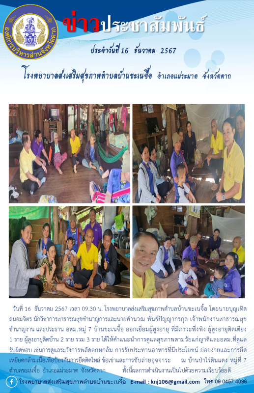 ออกหน่วยเยี่ยมบ้านผู้ที่มีภาวะพึ่งพิง ผู้สูงวัยติดเตียง